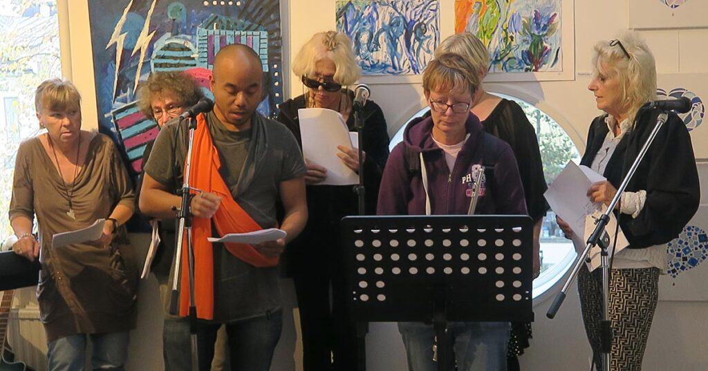 Det sistnämnda är nog så viktigt. Medlemmarna i Club Lindormen, RSMH Uppsala, har alla haft det tufft på något sätt. Flera har behandlats och vistats på numera nedlagda psykiatrimottagningen i Ulleråker. En av dem är utställaren Barbara Russel, som sjöng och läste en dikt vid vernissagens öppnande.