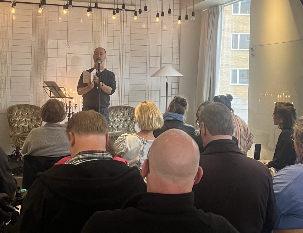 Den nionde maj hade vi releasefest för ”Läkarna gjorde ett hjärta av gallan” på Poeten på hörnet i Malmö. Vi hade öppen mikrofon och tio av författarna läste sina texter.